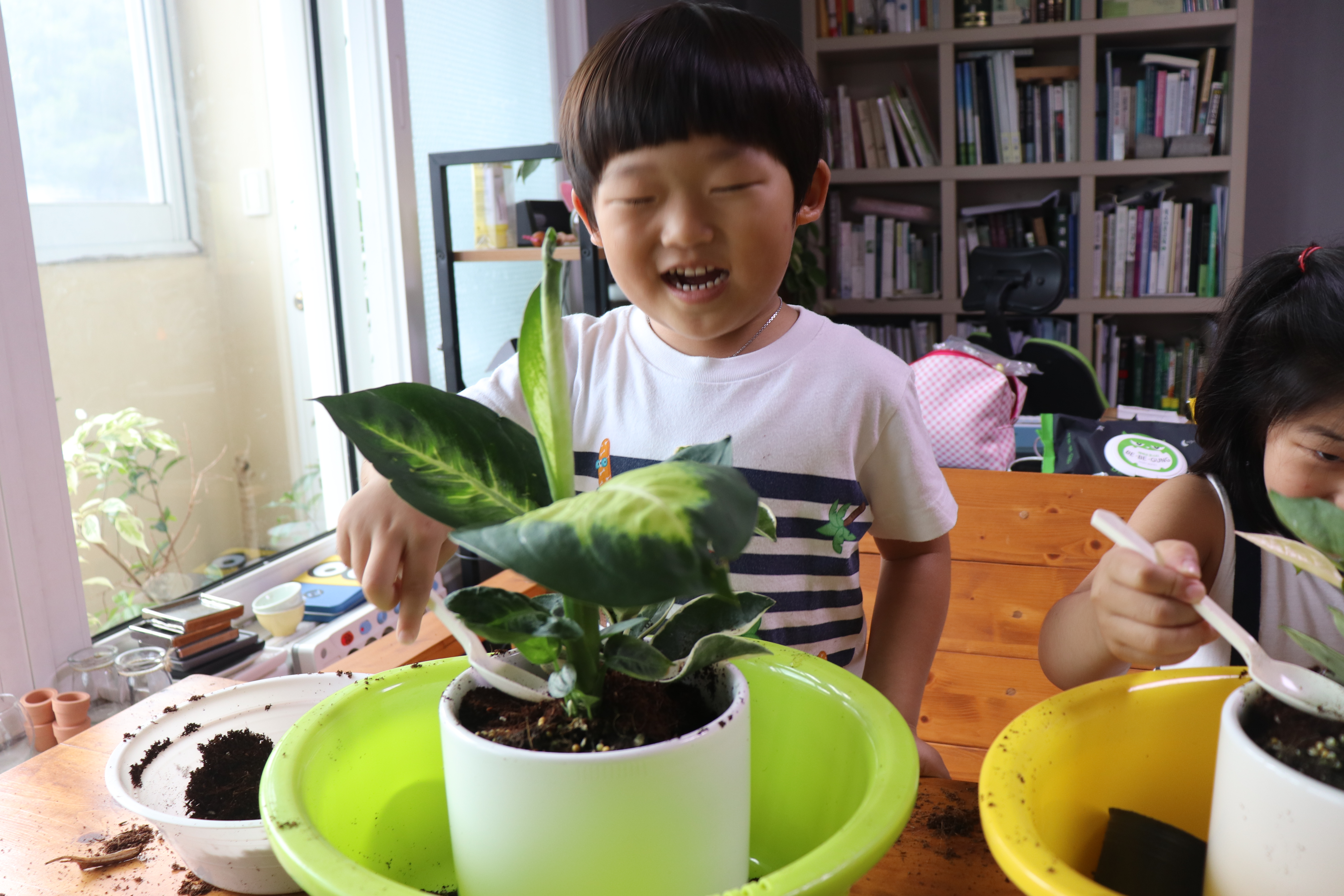 아이들이 진지한 모습으로 원예치료 프로그램에 임하는 중입니다~^^