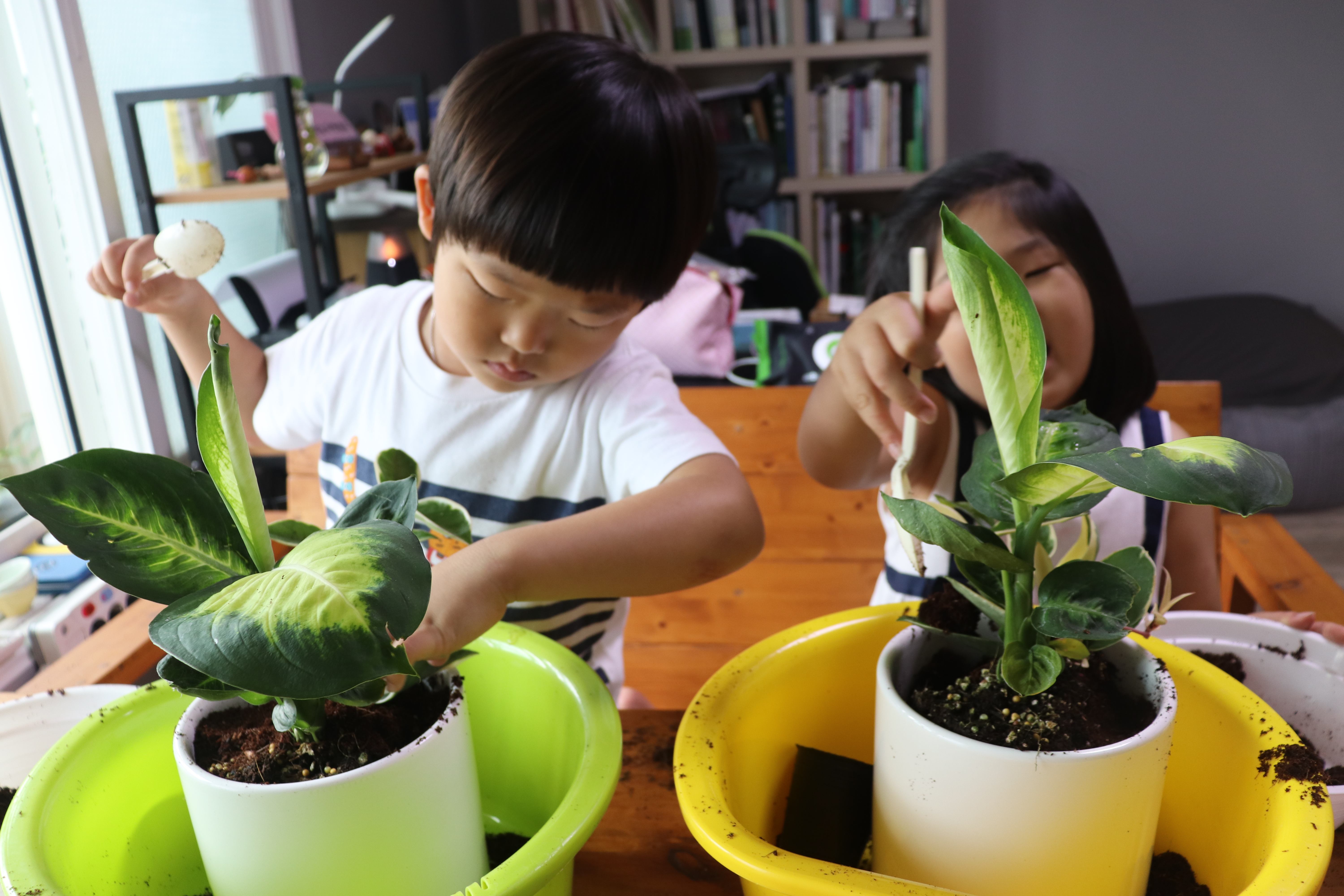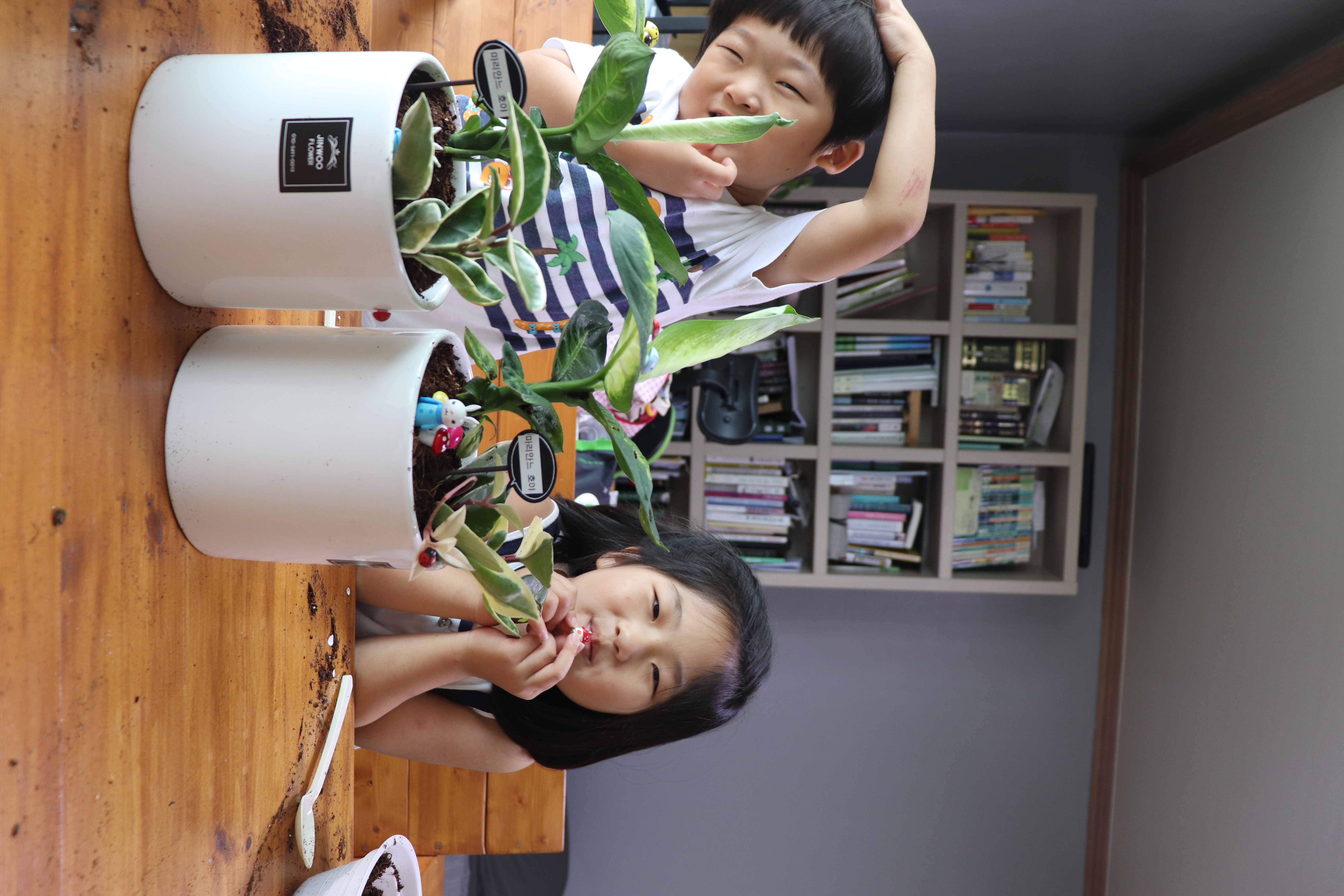 아이들이 진지한 모습으로 원예치료 프로그램에 임하는 중입니다~^^